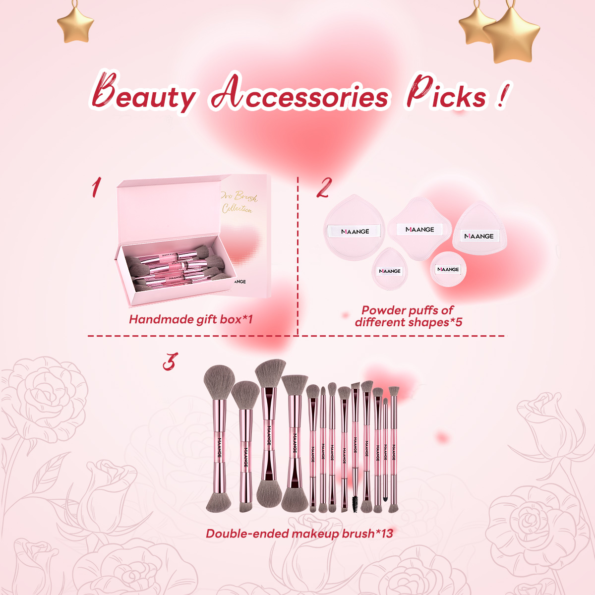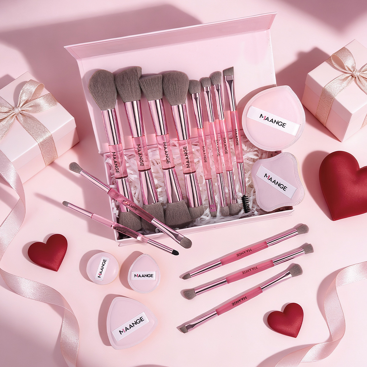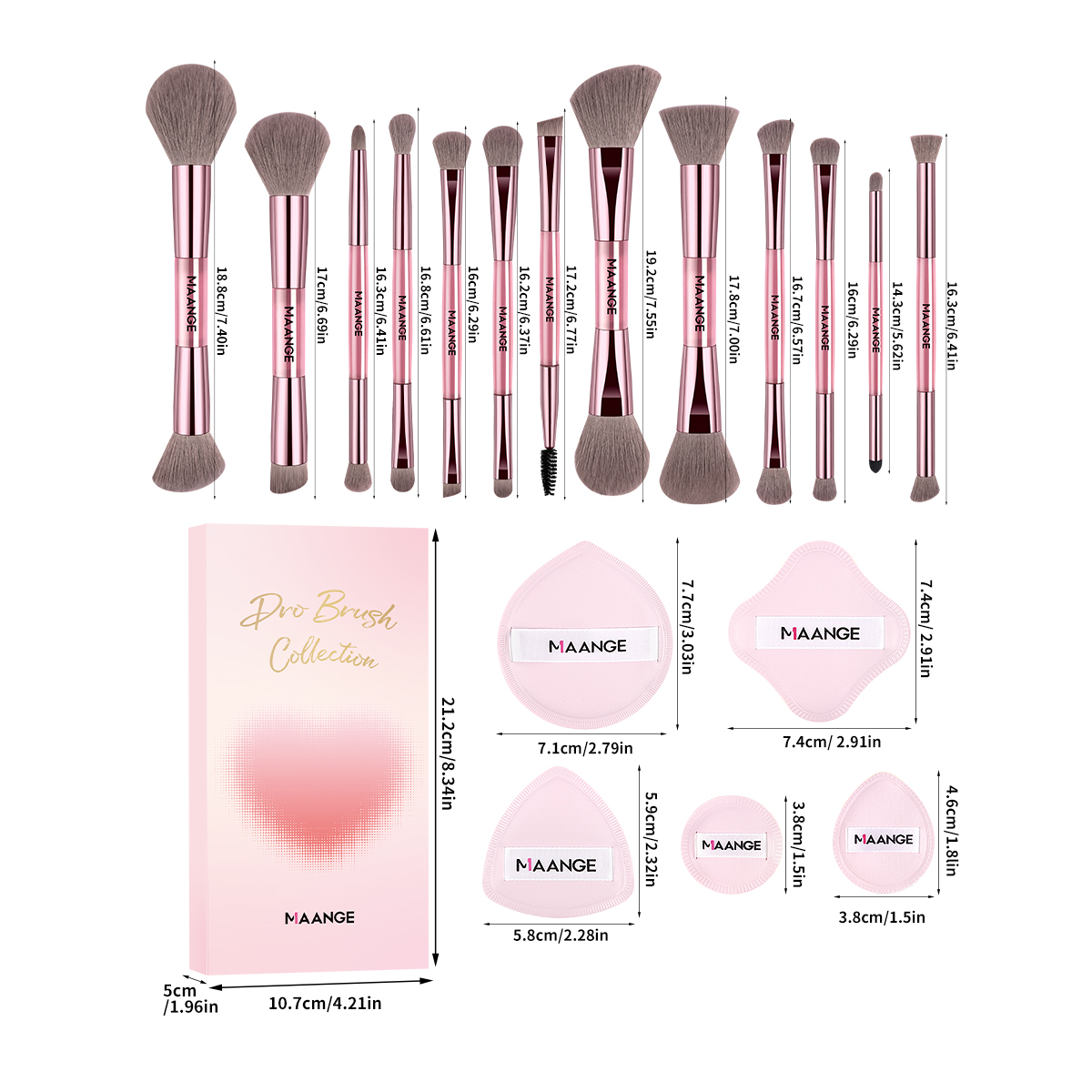 MAANGE Wholesale New Arrival Professional 13Pcs Makeup Brushes 5 Powder Puff Customized OEM&ODM Facial Makeup Brush Set