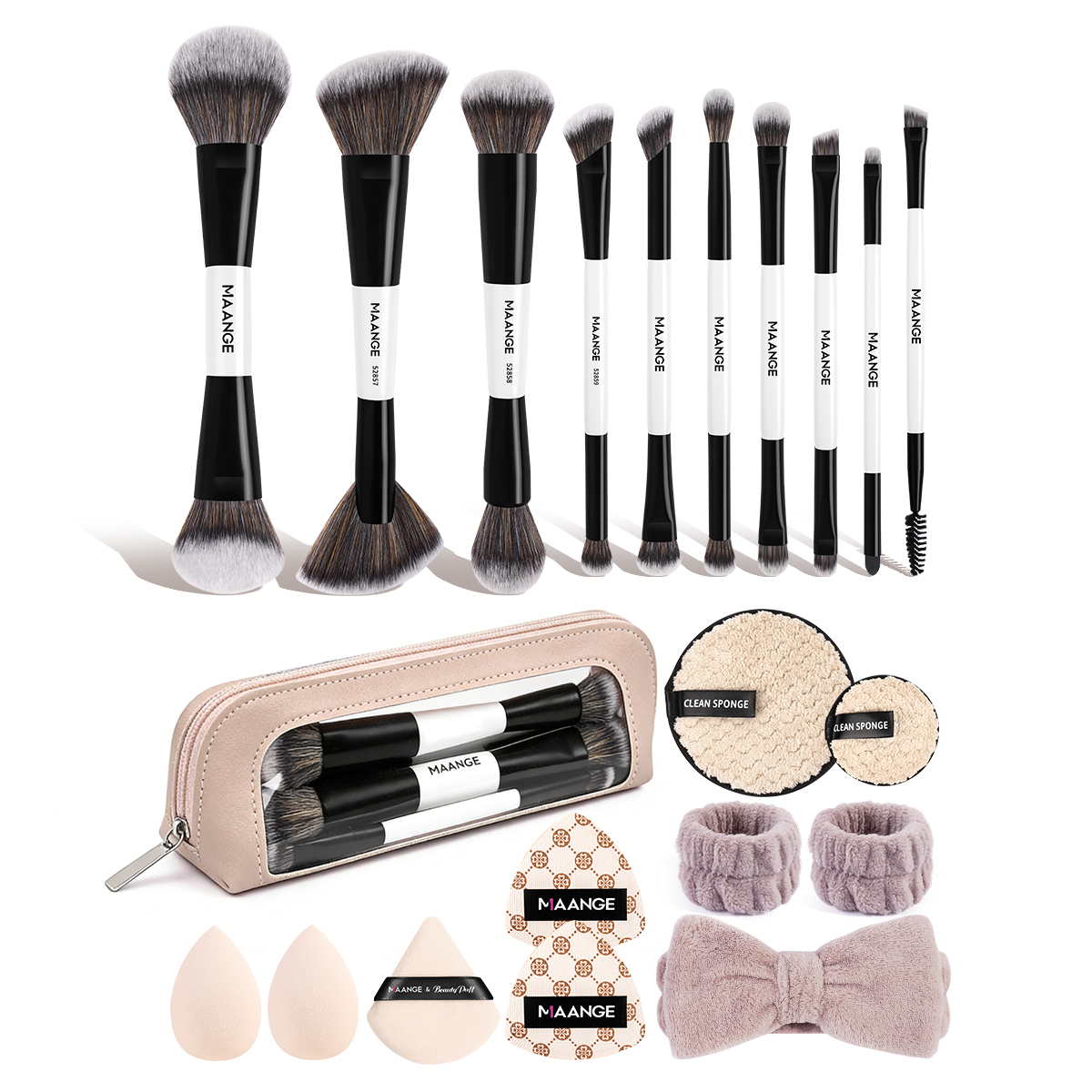 MAANGE Professional 10pcs Makeup Brush Set 7pcs Powder Puff Eyes Facial Brush Soft Blush Brushes Eco Cosmetic Makeup Brush Set