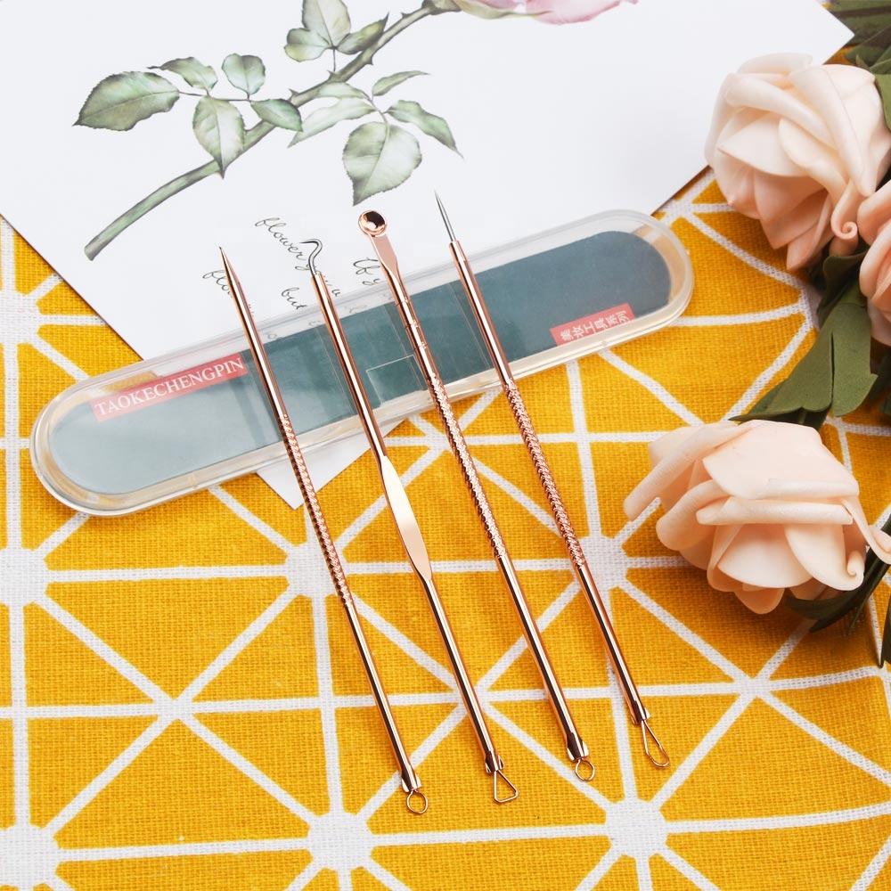 Acne Needle 4pcs/set Gold Stainless Steel Blackhead Remover Tool Comedone Pimple Acne Needle