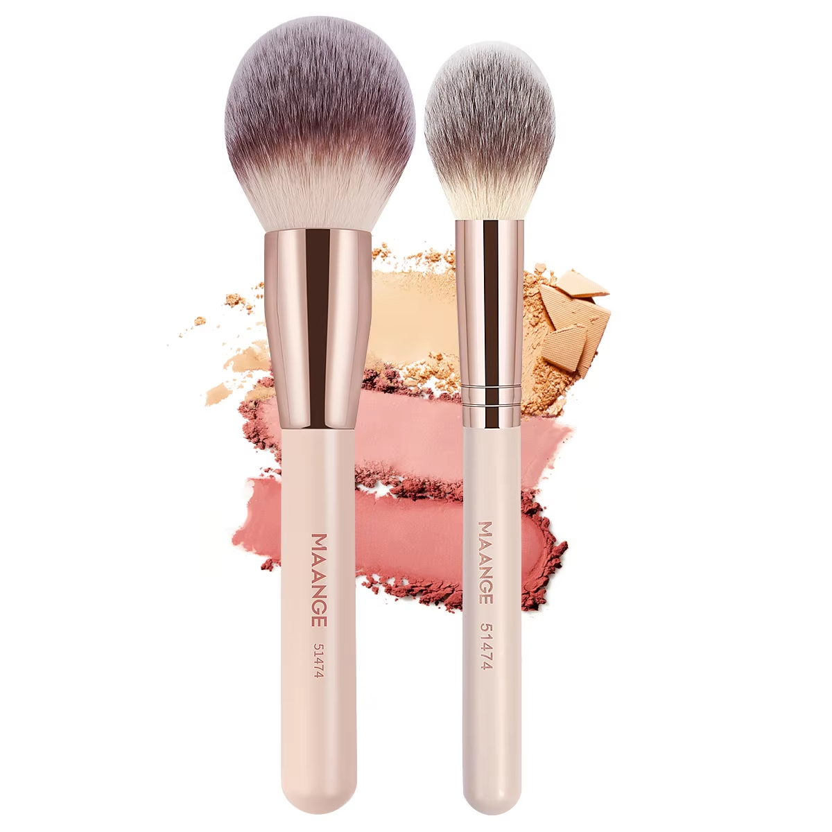 MAANGE 2Pcs New Powder Brush & Blush Brush Set Wooden Handle Synthetic Fiber Material New Packaging Box Makeup Brush