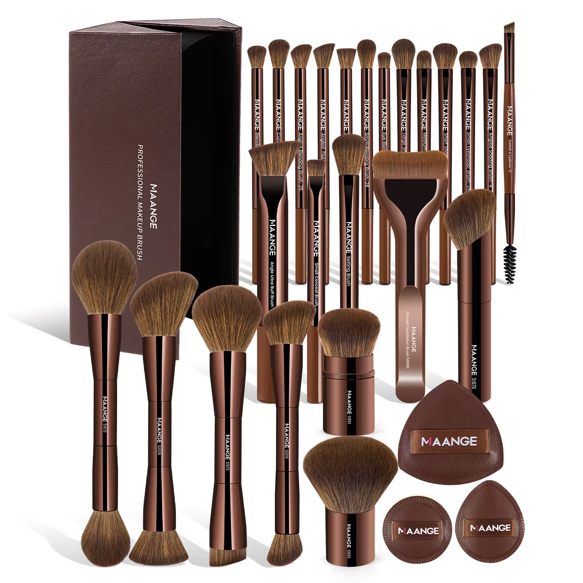 MAANGE OEM Custom Logo Professional 24 Pieces Makeup Brushes Set With Bag 3 Powder Puff Facial 24pcs Makeup Brush Set