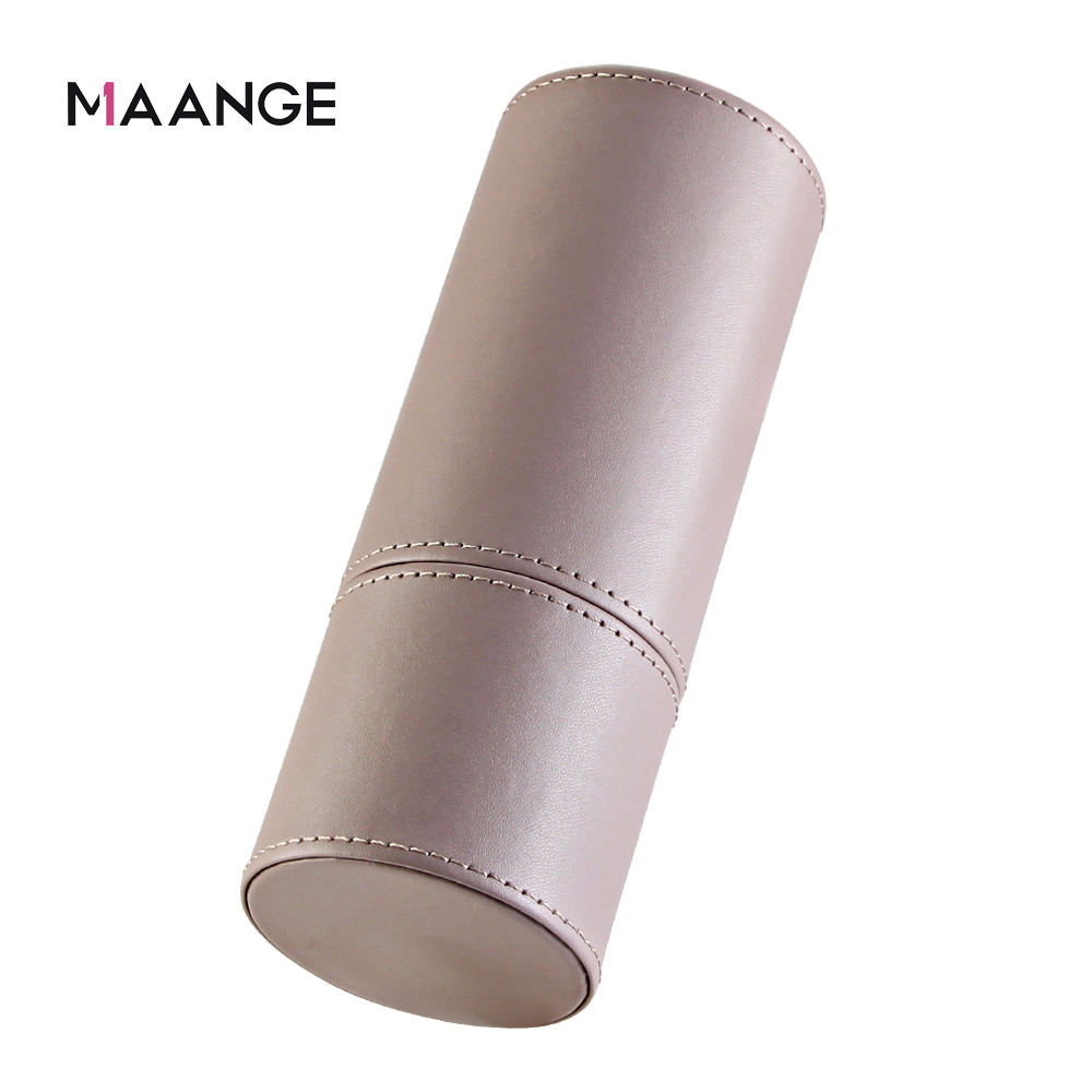 MAANGE Waterproof Cylindrical Makeup Organizer Storage Box Red Grey PU Leather Cosmetic Bag Zipper Closure Stylish Fashion Style