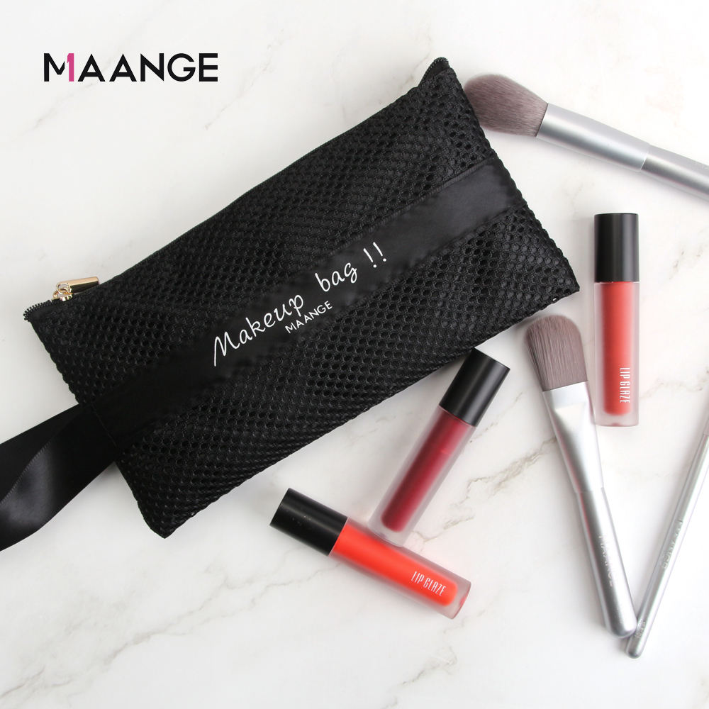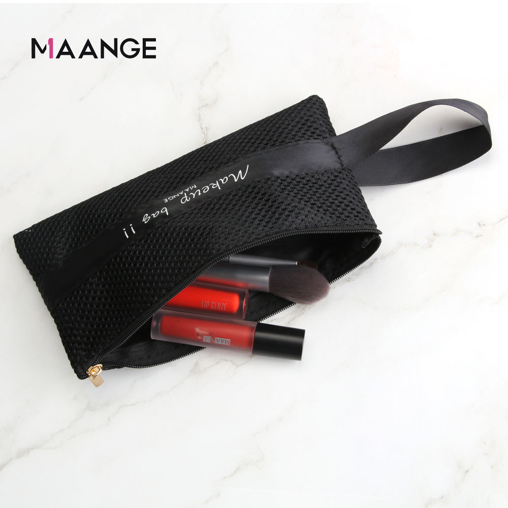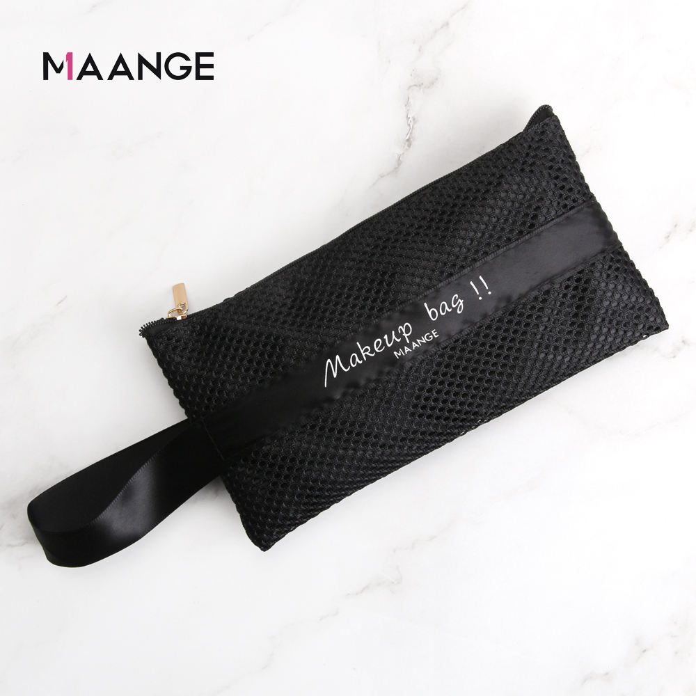MAANGE Wholesale Custom Portable Makeup Organizer Bags Travel Black Nylon Mesh Zipper Cosmetic Bag